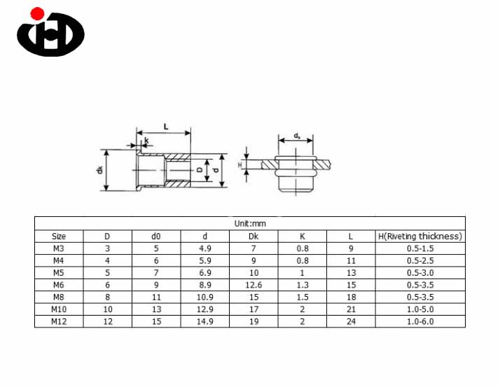 304 đai ốc đinh tán bằng thép không gỉ, được tán thành các vật thể như tấm mỏng hoặc vỏ, cho phép bắt vít trong trường hợp không thể lắp đai ốc từ phía sau. 304 Quy trình lắp đặt hạt đinh tán bằng thép không gỉ rất đơn giản và nhanh chóng, không chỉ cải thiện hiệu quả làm việc mà còn giảm chi phí lắp đặt.