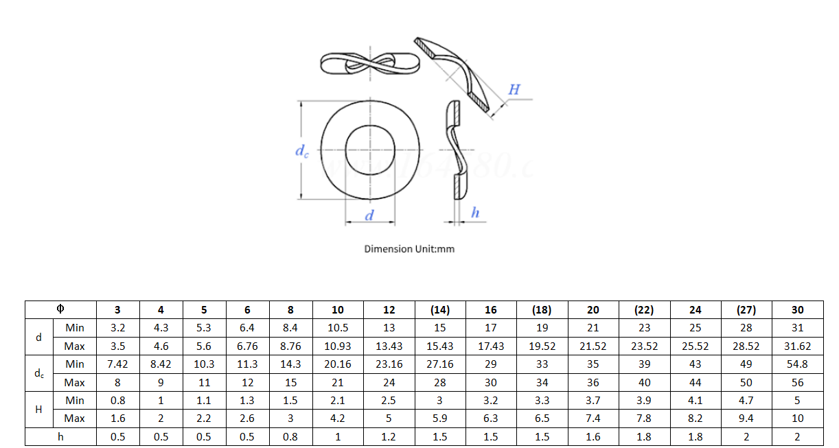 Sản phẩm này dựa trên thép lò xo thép mangan 65Mn. Nó có giới hạn đàn hồi cao hơn và độ bền mỏi tốt hơn thông qua xử lý nhiệt chuyên nghiệp. Thiết lập đó giữ cho hiệu suất đàn hồi ổn định ngay cả trong cài đặt rung lâu dài. Nó cũng đảm bảo sản phẩm được giữ vững mà không bị biến dạng hoặc gãy khi chịu lực nén và tải nặng lặp đi lặp lại. Nhìn chung, điều này dẫn đến tuổi thọ sử dụng lâu hơn nhiều. Thiết kế gợn sóng nổi bật vì tạo ra phản lực đàn hồi ổn định và mạnh mẽ khi bị nén. Lực đó giúp ngăn bu lông và đai ốc tự nới lỏng khi rung. Các bài kiểm tra độ rung chuyên nghiệp đã xác nhận điều đó. Lực khóa vẫn ổn định trong điều kiện rung liên tục. Thêm vào đó, hiệu quả chống nới lỏng tốt hơn các máy giặt phẳng thông thường rất nhiều. Họ sử dụng kỹ thuật dập chính xác để tạo thành nó. Họ cũng kiểm soát chặt chẽ quá trình làm nguội và ủ. Tất cả điều này đảm bảo kích thước luôn chính xác và hiệu suất vẫn đáng tin cậy.
