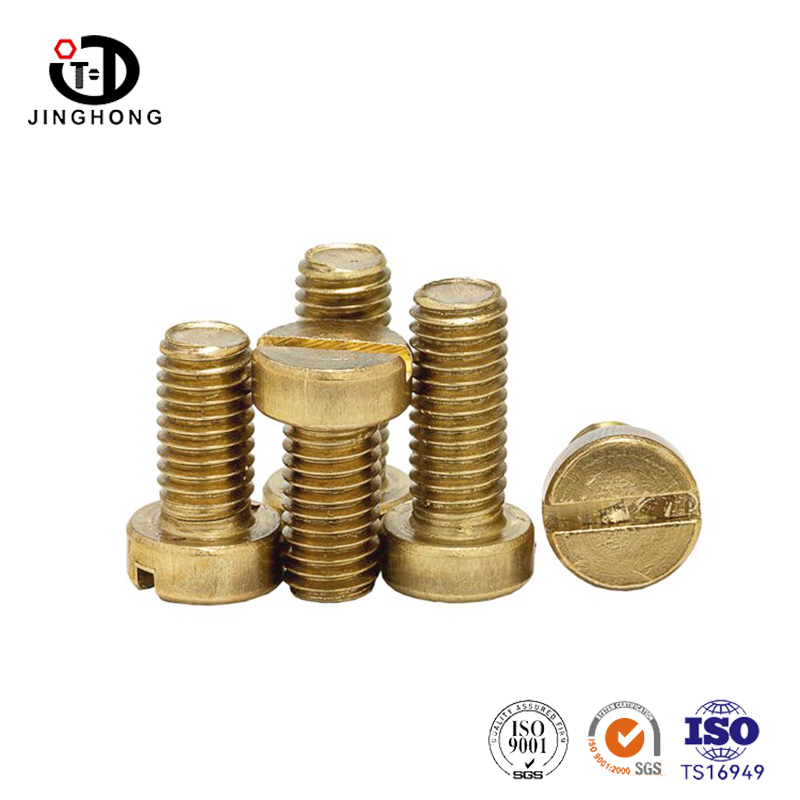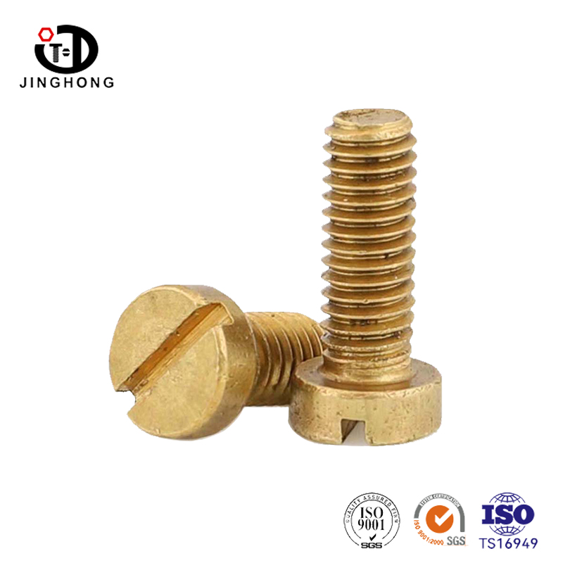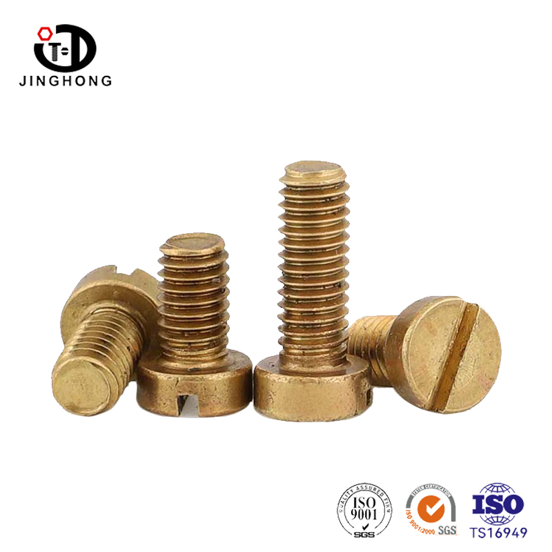Vít đầu xi lanh có rãnh bằng đồng là dây buộc với đầu xi lanh được vật chất hóa bằng đồng và khe cắm thẳng (có rãnh). Đồng thau có khả năng chống ăn mòn và dẫn điện tốt. Vì vậy, nó có thể được sử dụng trong khu vực ngăn chặn rỉ sét hoặc khu vực dẫn điện. Nó được sử dụng rộng rãi trong thiết bị điện tử, thiết bị, phần cứng trang trí, v.v.