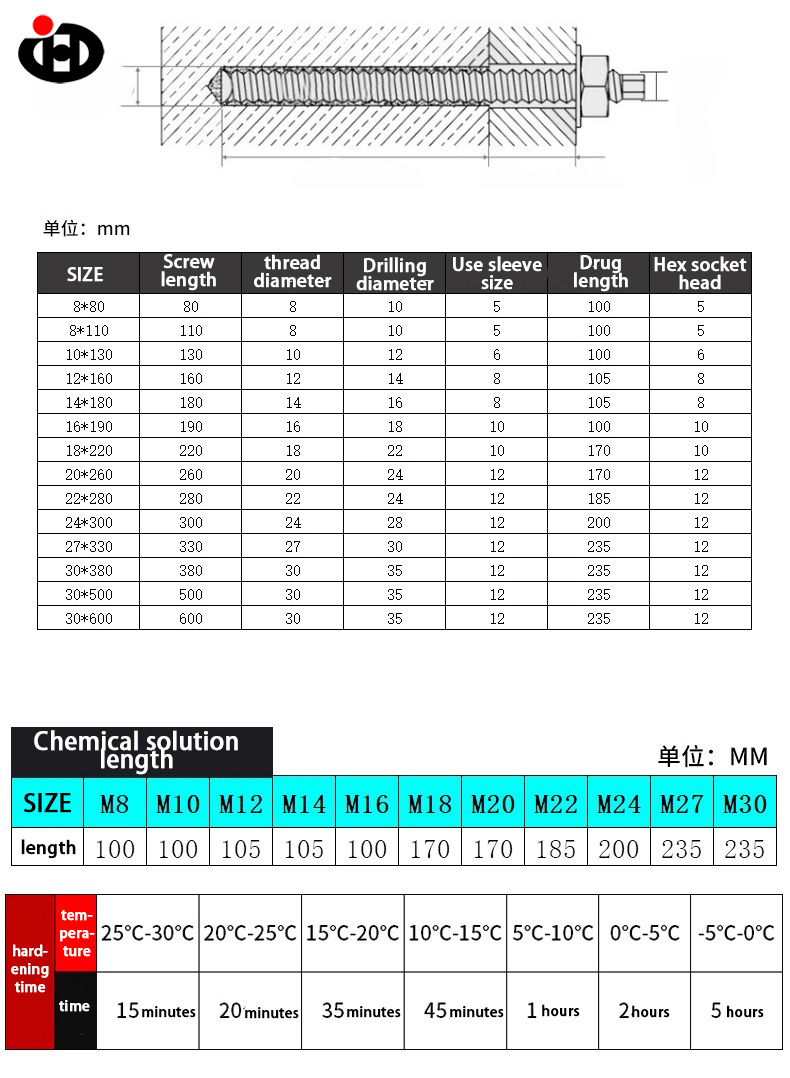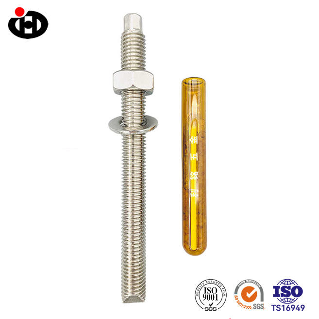 Bu lông mở rộng hóa học áp dụng thiết kế kết hợp "Vít+vít hóa học", được cố định bằng bùn hóa học đặc biệt để tạo thành một lớp liên kết cường độ cao với chất nền, và lực neo có thể so sánh với các bộ phận nhúng. Nó được sử dụng rộng rãi trong xây dựng cấu trúc thép, cố định thiết bị, lắp đặt bức tường rèm và các cảnh khác với các đặc điểm của ổ trục, kháng động đất, kháng lão hóa, lắp đặt thuận tiện, v.v.