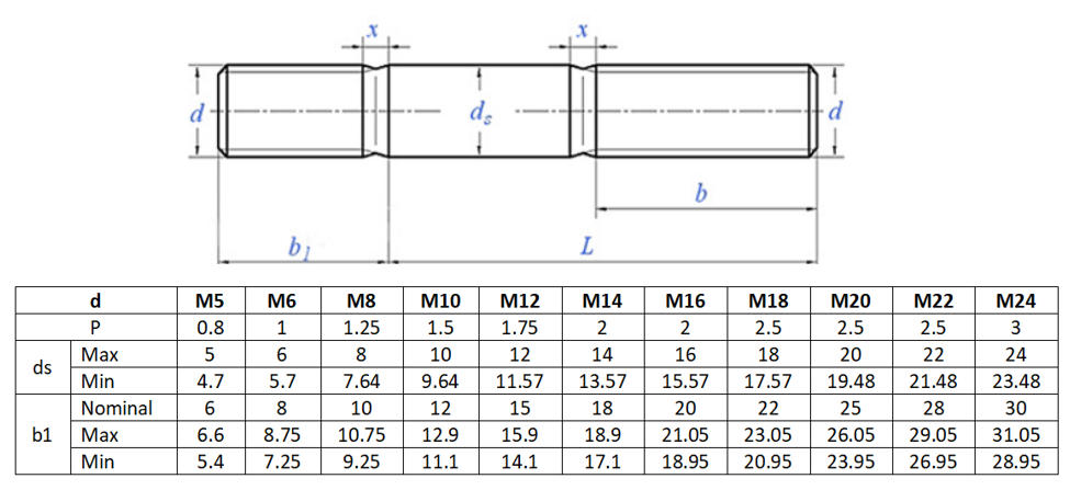 Bu lông hai đầu bằng thép carbon có các phần ren có thể tùy chỉnh (có đường kính giống nhau/khác nhau) và chiều dài phần giữa trơn tru. Chúng được kết nối với các bộ phận nặng bằng cách bắt vít vào đế ở một đầu và khóa bằng đai ốc ở đầu kia, giúp việc tháo lắp trở nên dễ dàng. Chúng có khả năng chống rung, độ bền và được sử dụng rộng rãi trong các lĩnh vực như điện, ô tô, đường sắt và công nghiệp hóa chất.