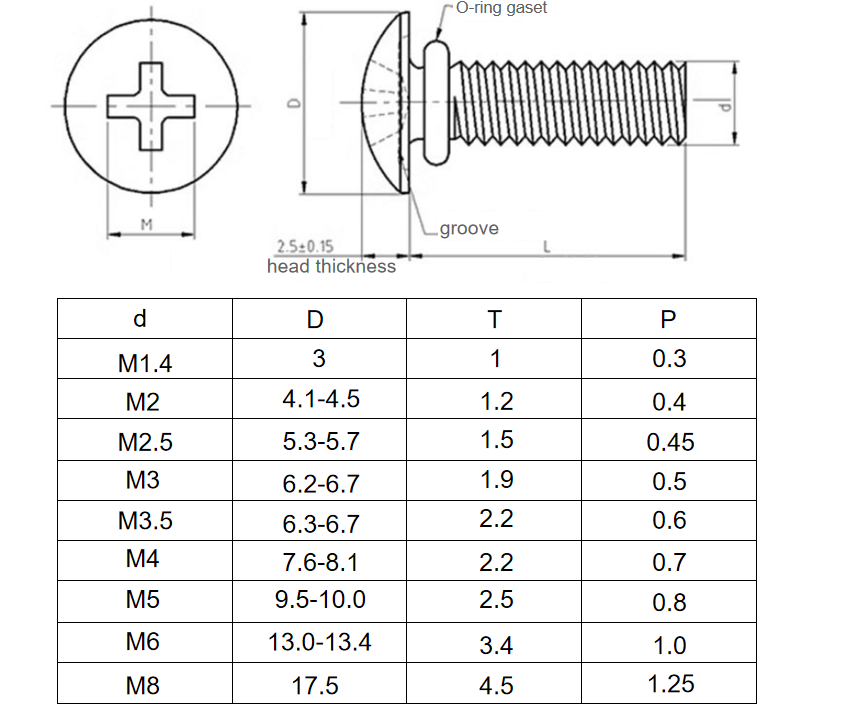 Vít đầu chữ thập bằng thép không gỉ có vòng chữ O |