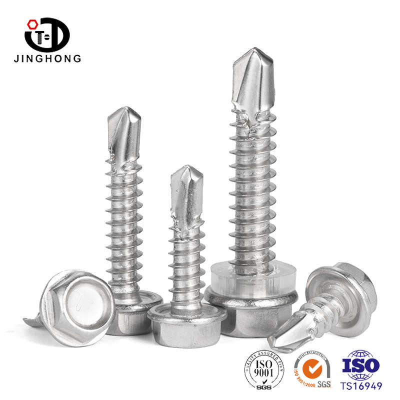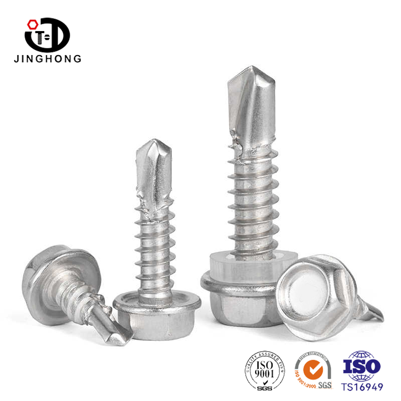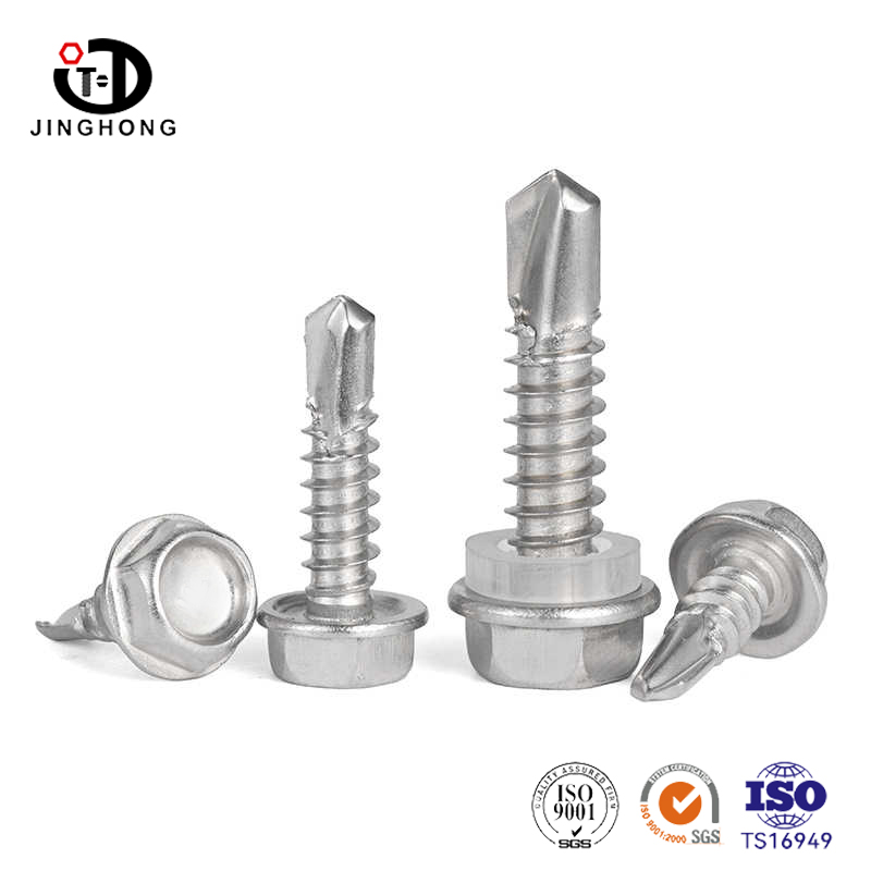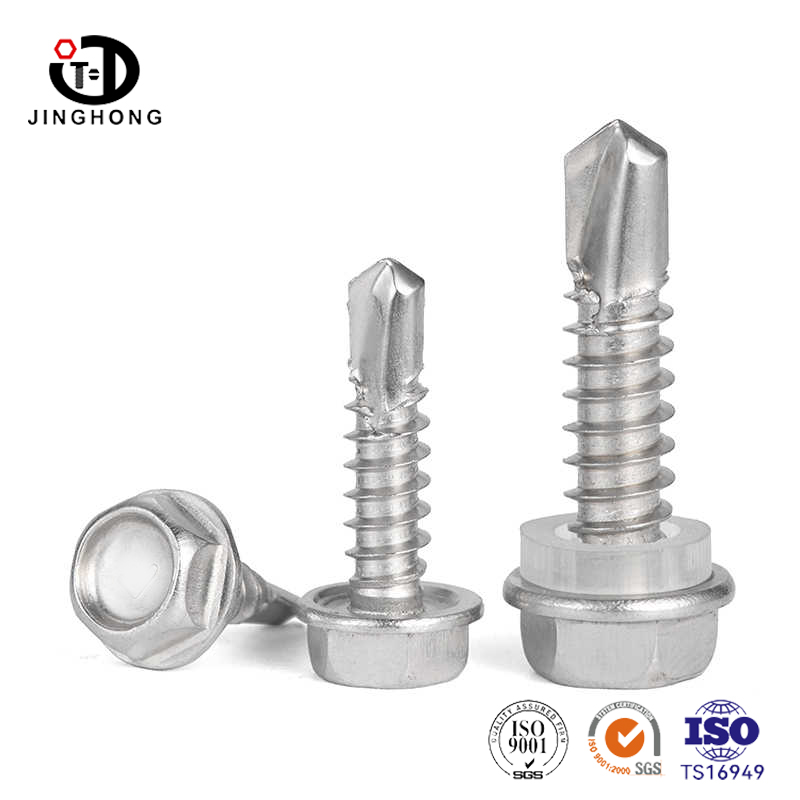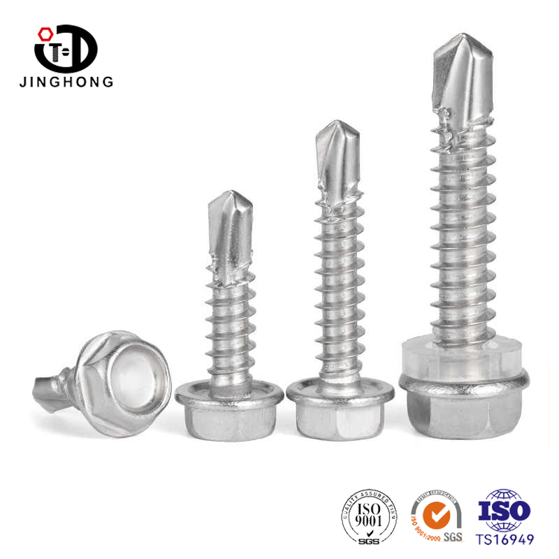 Vít Tek cho kim loại là một ốc vít tự khoan kết hợp đầu hình lục giác và mặt bích. Thiết kế của nó khéo léo tích hợp các chức năng tự khoan và mặt bích thành một, giúp dễ dàng thâm nhập vào vật liệu để buộc chặt mà không cần khoan trước. Loại vít này thường được làm bằng thép hợp kim chất lượng cao hoặc vật liệu bằng thép không gỉ, trải qua quá trình xử lý nhiệt chính xác và xử lý bề mặt để đảm bảo sức mạnh cao, khả năng chống ăn mòn và khả năng chống mài mòn.